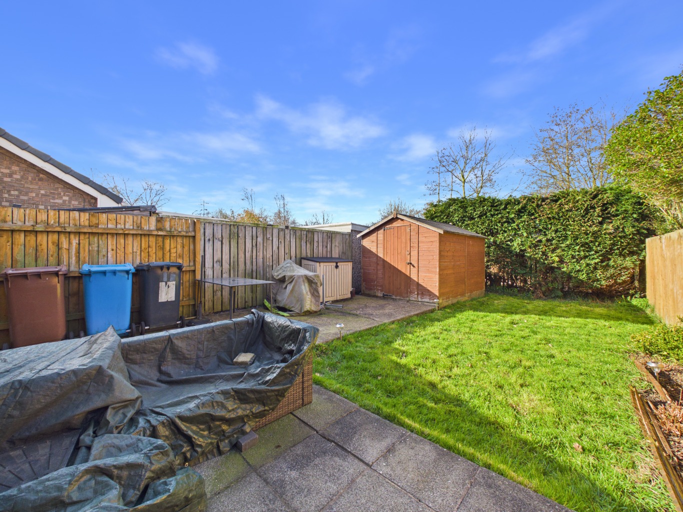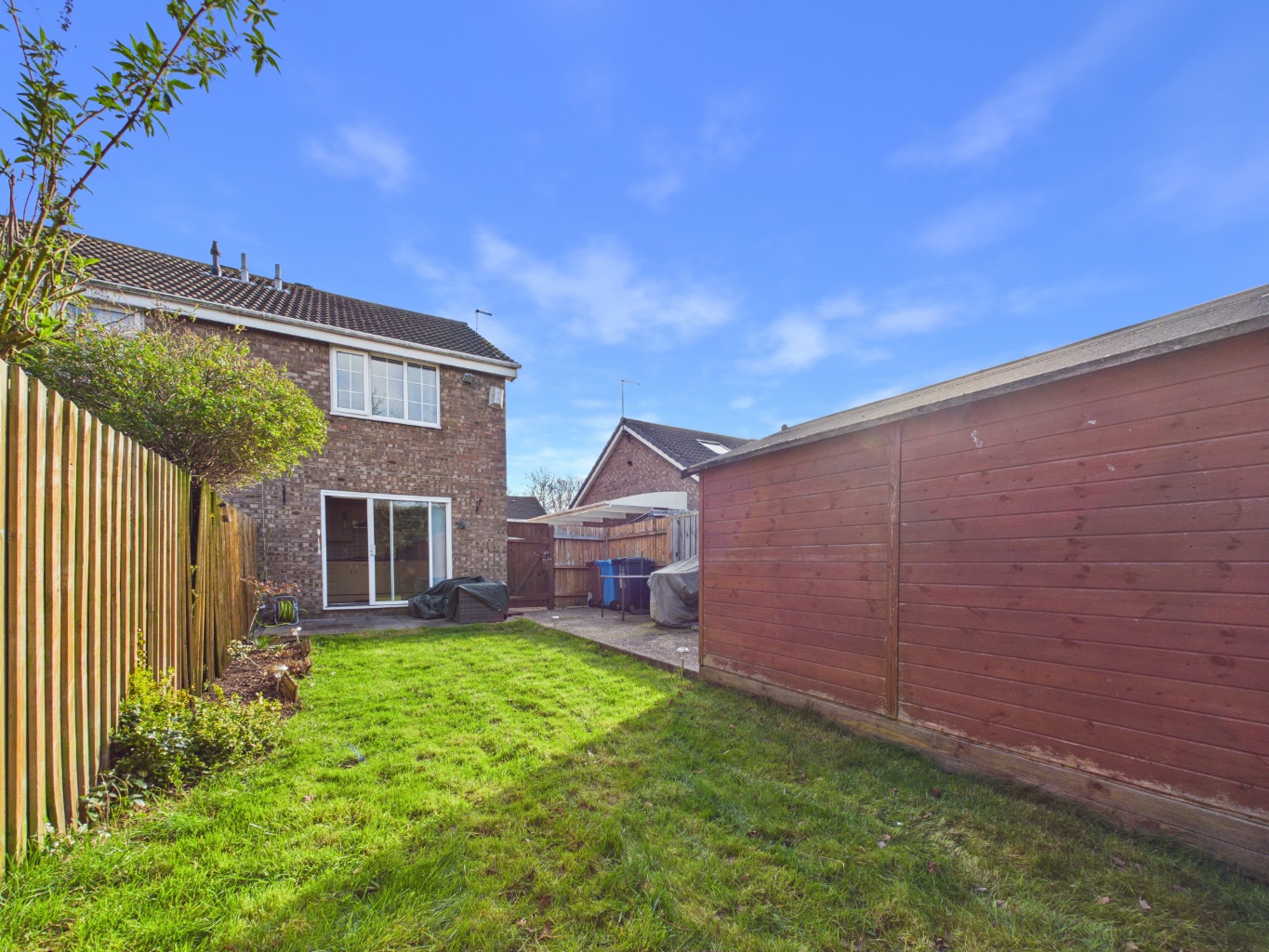 The entrance is conveniently located to the side, leading you into a well-equipped KITCHEN with plenty of WALL and BASE UNITS. There's ample space for a dining table, and the SLIDING DOORS open up to a PATIO and a SUNNY LAWNED REAR GARDEN. On the right, you'll find a SPACIOUS LIVING ROOM featuring a mock BAY WINDOW that adds character and charm. The staircase takes you to the first floor, where you'll find a BATHROOM with both a BATH and SHOWER. The MAIN BEDROOM at the back offers lovely views of the garden, while the second DOUBLE BEDROOM at the front provides a mirror image layout. This home is ideal for those looking to enjoy a peaceful lifestyle with all the conveniences of city living just a stone's throw away.