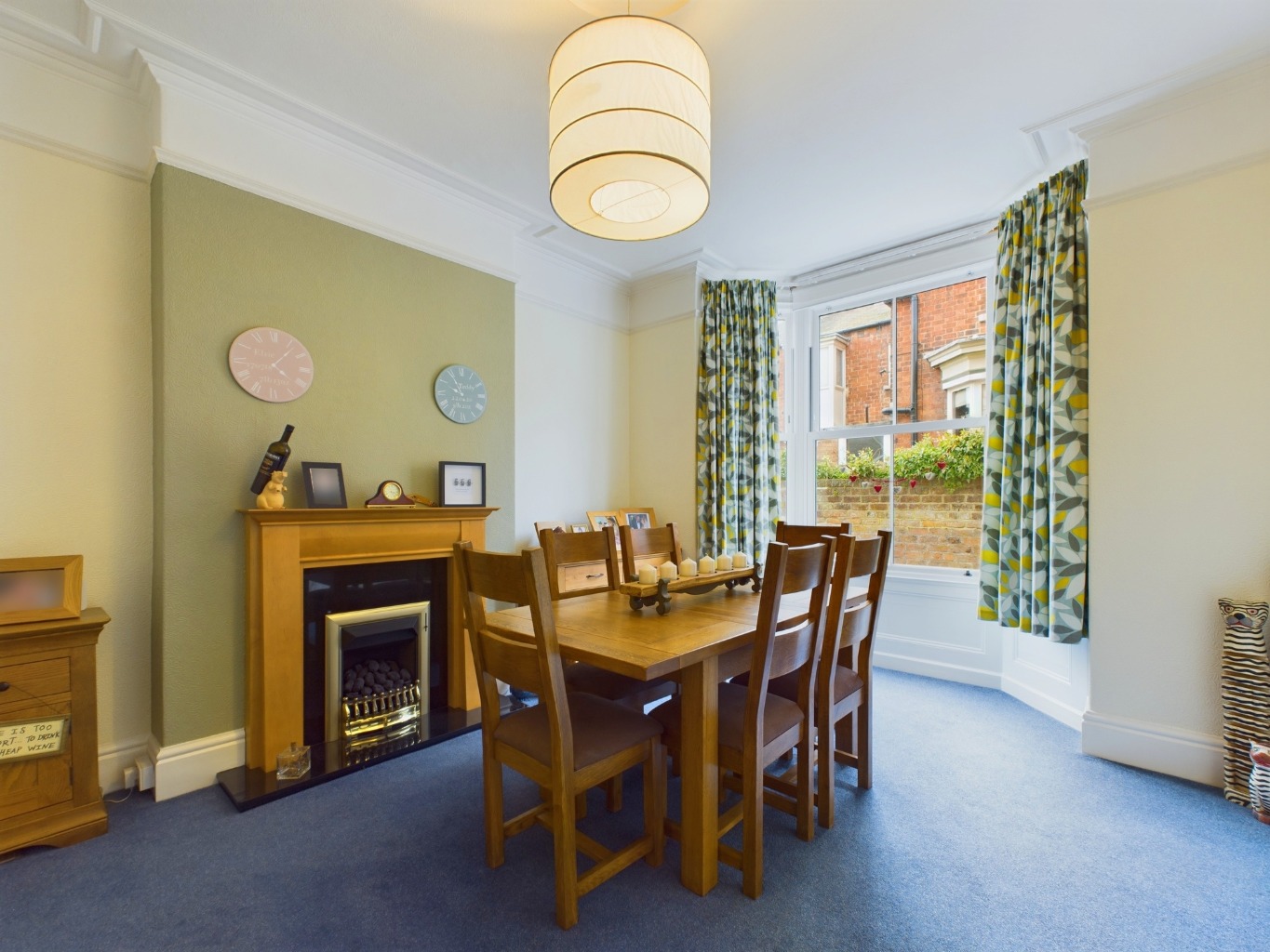 Dining Room - 4.22m x 3.76m plus bay (13'10" x 12'4" plus bay) - Another excellent and versatile reception room, again with ornate ceiling coving, picture rail, radiator, fitted carpet and a walk-in bay with double glazed sash windows to the side elevation. A living flame gas fire, set within a granite composite hearth and back with timber mantelpiece surround, creates an appealing focal point.
