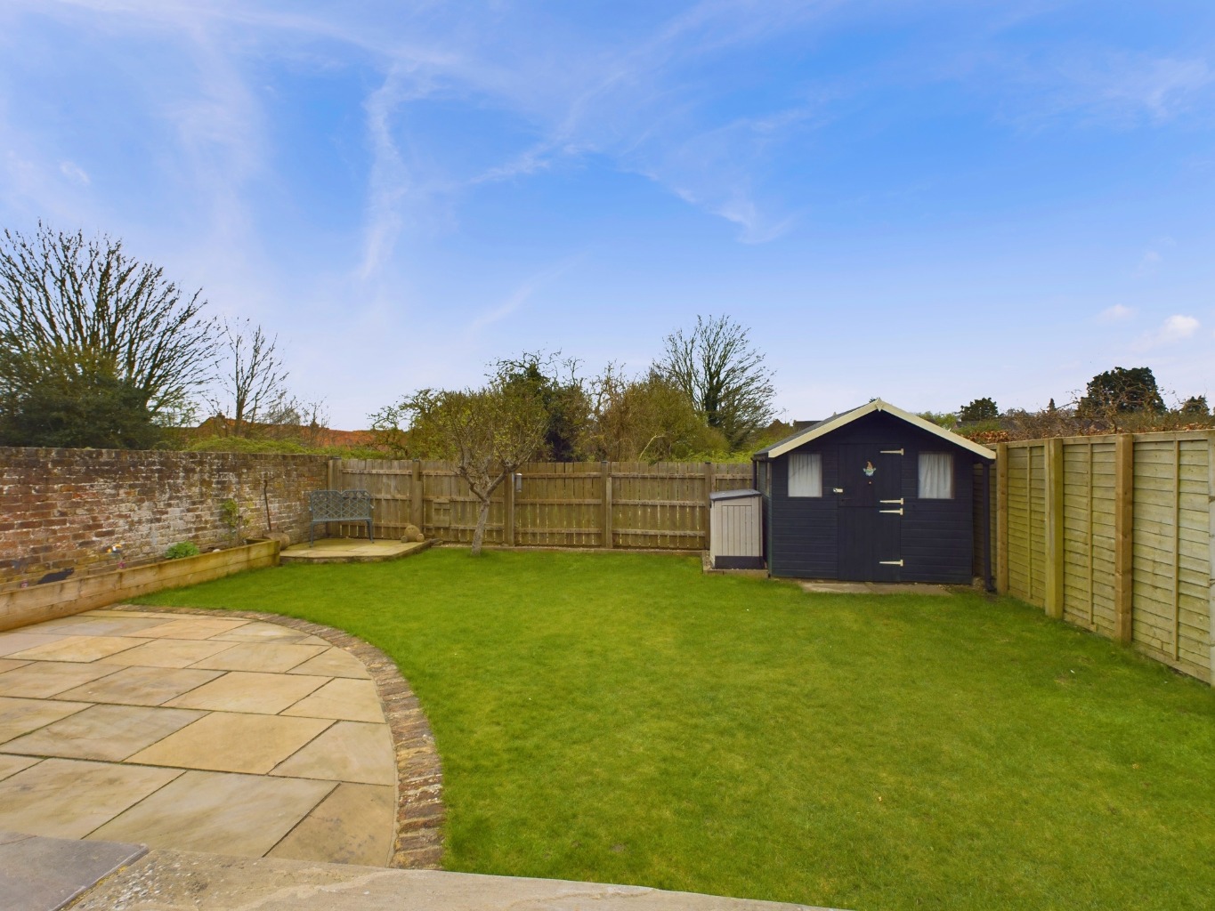 Rear Garden - A pleasant garden area, enjoying a sunny, south-facing aspect, set within a part walled and part fenced perimeter. Attractively landscaped to provide a lawn, Indian sandstone patio terrace and retained planting box. Summerhouse and store shed, external lighting and cold water tap.