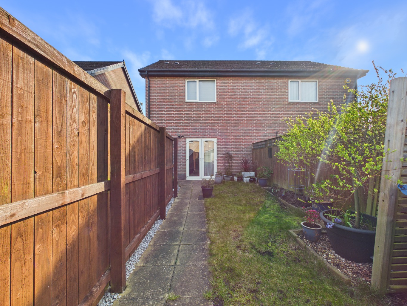 Upstairs, the home offers two comfortable double bedrooms and a modern family bathroom. Externally, the property benefits from a gated shared driveway, providing access to a dedicated parking bay, alongside an enclosed private garden to the rear.